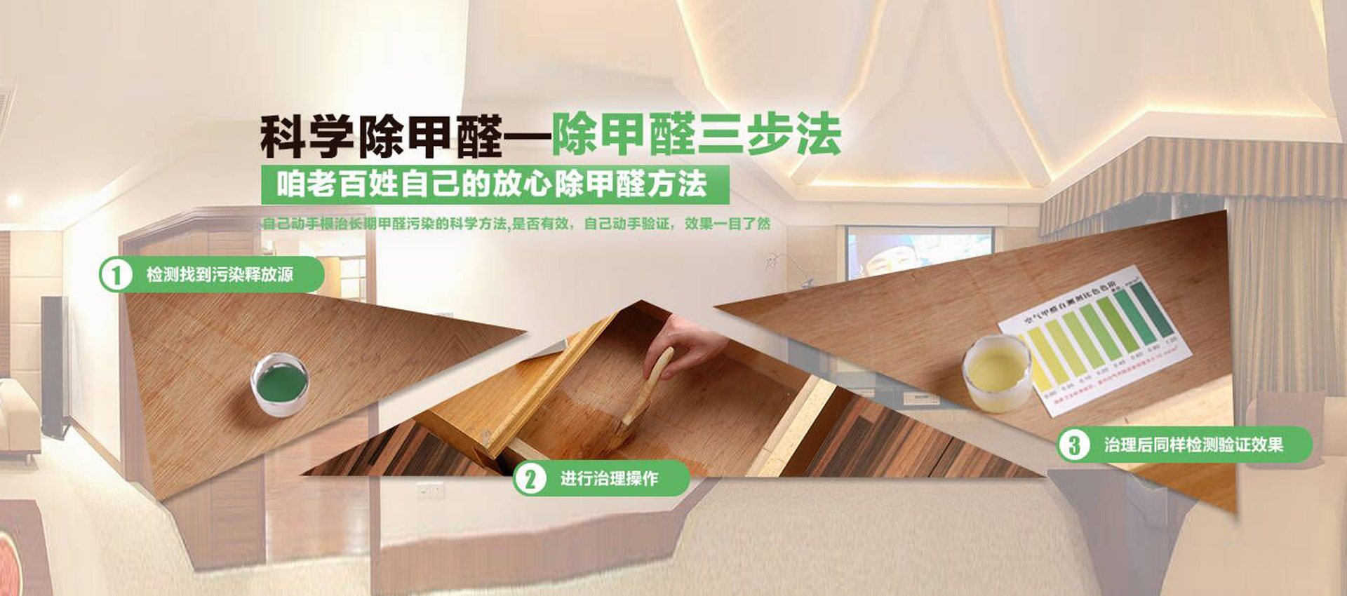 專業(yè)除甲醛 19年經(jīng)驗(yàn) 自主研發(fā) 無(wú)二次污染 標(biāo)本兼治 全面治理 根源解決 長(zhǎng)效更安全