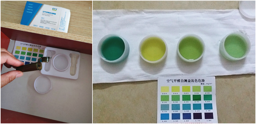 檢測(cè)家具內(nèi)甲醛,查找甲醛污染源,推薦用甲醛自測(cè)盒,而不是電子類(lèi)甲醛檢測(cè)儀。甲醛自測(cè)盒采用國(guó)家標(biāo)準(zhǔn)的甲醛檢測(cè)方法,利用甲醛易溶于水的原理,自然吸收空氣中的甲醛,檢測(cè)結(jié)果穩(wěn)定可靠。