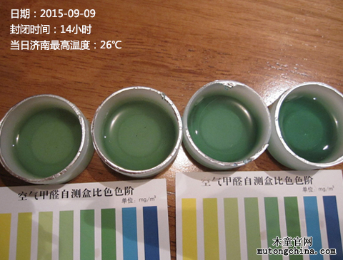 我們設定的條件是:夏天,室內溫度超過23度(后面再解釋為什么要設定這樣的條件)。我們用甲醛自測盒實施了第一次檢測,甲醛濃度值在0.1與0.2毫克之間,超標不嚴重。