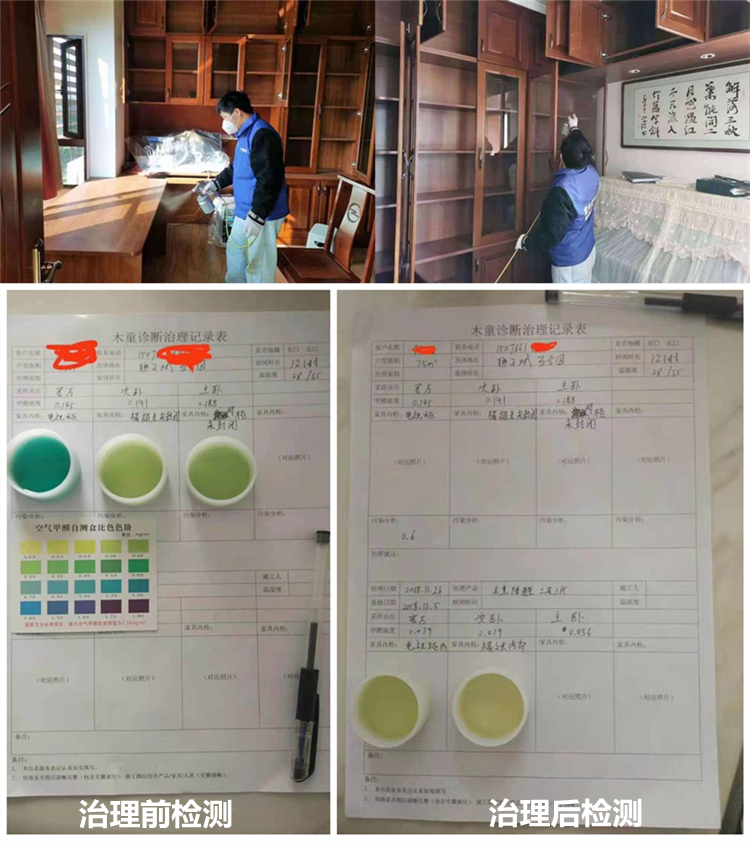 除味等室內空氣污染治理。通過治理前后的檢測結果對比,客戶非常滿意,并對木童品牌給與了高度認可,木童