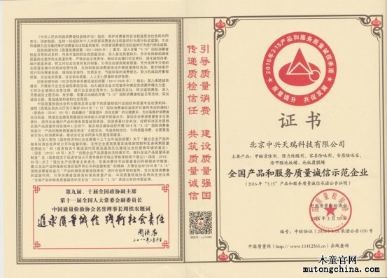 地板蠟、地板覆膜蠟等產品,經過中國質量檢驗協會與國家質檢總局質量申訴處理中心的抽查評審,榮獲“全國產品和服務質量誠信示范企業”。