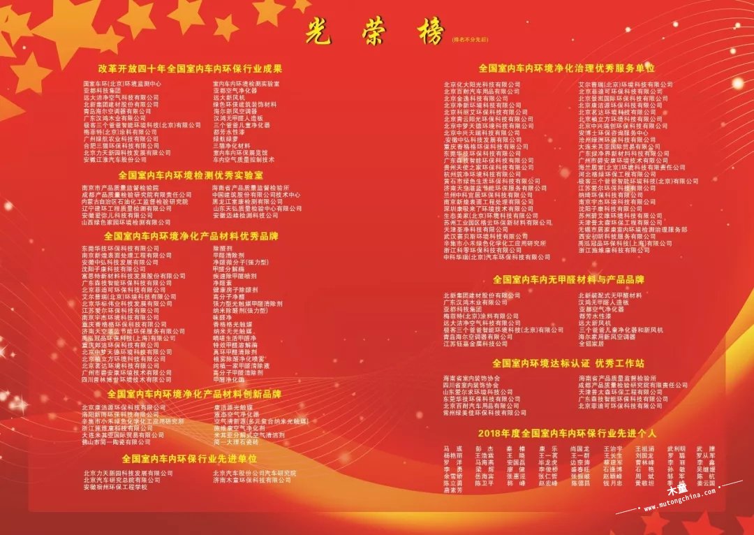 會(huì)上還發(fā)布了改革開放四十年全國(guó)室內(nèi)車內(nèi)環(huán)保行業(yè)的創(chuàng)新成果和凈化治理產(chǎn)品優(yōu)秀品牌、優(yōu)秀實(shí)驗(yàn)室、優(yōu)秀凈化服務(wù)單位、無甲醛產(chǎn)品推廣品牌和優(yōu)秀個(gè)人。