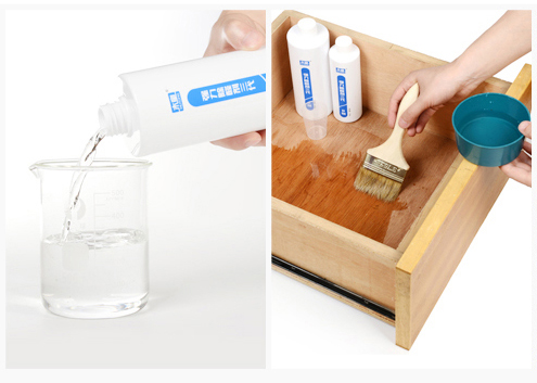 將木童強(qiáng)力除醛劑涂刷在人造板表面,有效成分借助水的滲透力,進(jìn)入板材表層的木材纖維中,水分蒸發(fā)后,有效成分在表層木纖維中形成均勻分布,遇到脲醛樹脂膠中游離出來的甲醛后,即捕捉并發(fā)生聚合反應(yīng),生成不可逆的無毒無害的大分子樹脂膠。這樣不僅從源頭上根治了人造板甲醛污染,而且不產(chǎn)生二次污染。只要在人造板中的還存在有效成分,那么與甲醛的聚合反應(yīng)就會持續(xù),從而達(dá)到長期穩(wěn)定的治理效果。